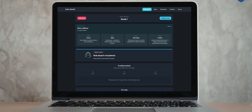 CyberGambit to interaktywna gra symulacyjna, która przenosi uczestników w świat realnych decyzji związanych z cyberbezpieczeństwem. Gracz wciela się w rolę osoby odpowiedzialnej za bezpieczeństwo organizacji i musi podejmować strategiczne wybory w dynamicznie zmieniającym się środowisku zagrożeń.